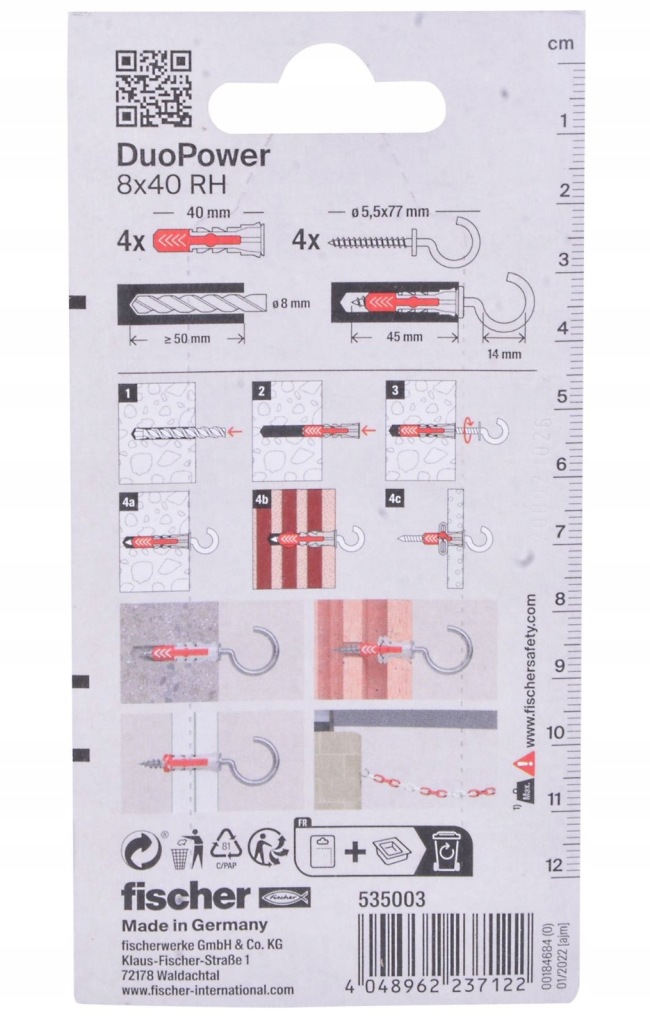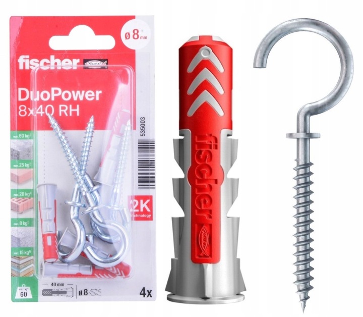 Fischer DuoPower 8x40 RH to inteligentny i uniwersalny kołek z hakiem, który gwarantuje stabilność, bezpieczeństwo i łatwy montaż w szerokiej gamie materiałów budowlanych – idealny wybór do profesjonalnych i domowych zastosowań.