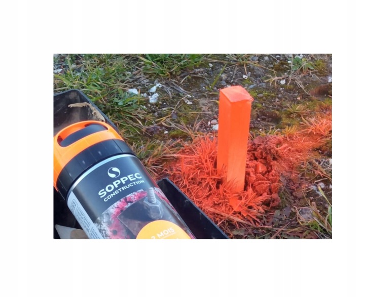 Profesjonalna farba geodezyjna w aerozolu SOPPEC FLUO TP w kolorze różowym, przeznaczona do wykonywania trwałych i bardzo dobrze widocznych oznaczeń podczas prac budowlanych, geodezyjnych oraz pomiarowych. Doskonała do stosowania zarówno na zewnątrz, jak i wewnątrz pomieszczeń.