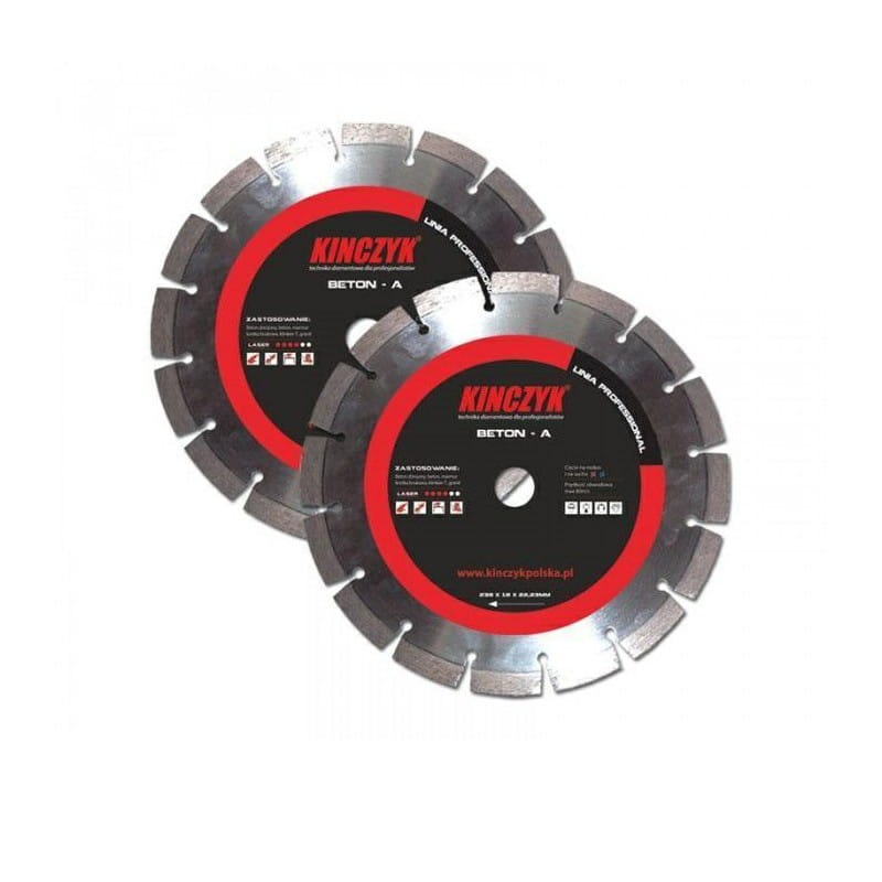 Tarcza diamentowa KIŃCZYK to wysoka wydajność i wyjątkowo szybki postęp prac. Wytrzymała tarcza umożliwia cięcie na mokro i na sucho.