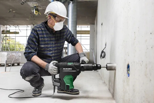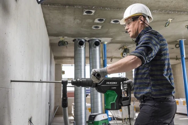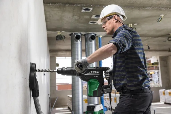 Młot udarowo-obrotowy HiKOKI DH45MAWSZ to sprzęt klasy profesjonalnej przeznaczony do intensywnych prac budowlanych. Wyposażony w silnik o mocy 1400 W, energię udaru 11,4 J oraz uchwyt SDS-Max, zapewnia maksymalną wydajność podczas wiercenia i kucia w betonie, kamieniu czy innych twardych materiałach.