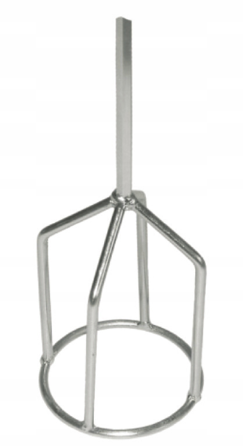 Mieszadło przeznaczone do gipsu, tynków gipsowych i gładzi szpachlowych. Konstrukcja z czterech grubych, trwale połączonych prętów skutecznie rozbija zbrylenia i miesza materiał na jednolitą masę bez nadmiernego napowietrzania. Pracuje lekko, a jednocześnie zapewnia wysoką siłę ścinającą.