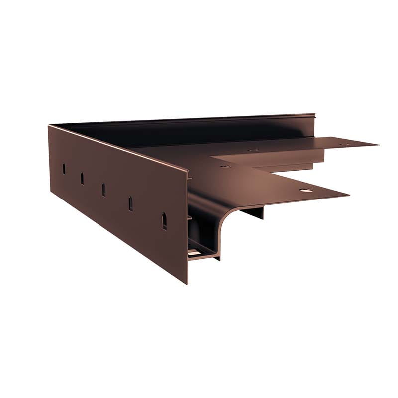 Narożnik do profilu okapowego W30R w kolorze brązowym RAL 8019. Do wyboru narożnik zewnętrzny lub wewnętrzny o kącie 90° lub 135°.