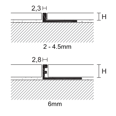 Nie zaleca się stosowania na podłogach profili wykonanych z aluminium polerowanego, aluminium lakierowanego i PCV.