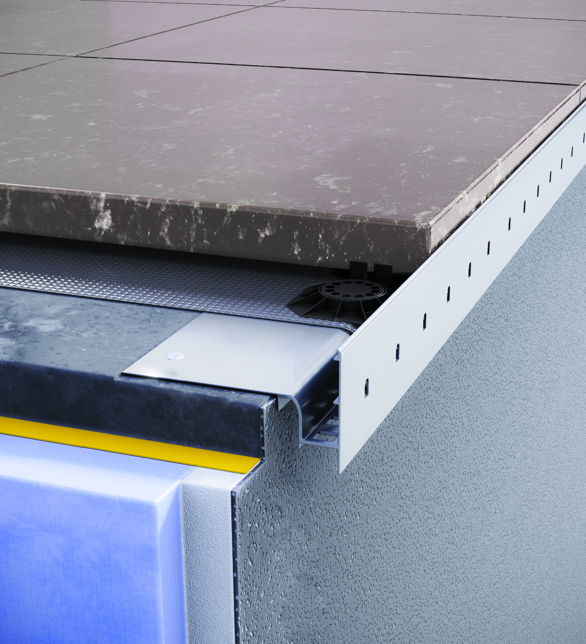 W30 jest profilem stosowanym na tarasach i balkonach z posadzką podniesioną – wentylowaną z płytek kamiennych, betonowych lub ceramicznych grubowarstwowych układanych na wspornikach.