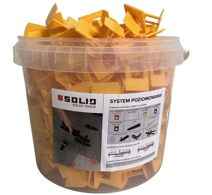 System poziomowania płytek – klipsy 2 mm, 800 sztuk, wiadro 20L SOLID