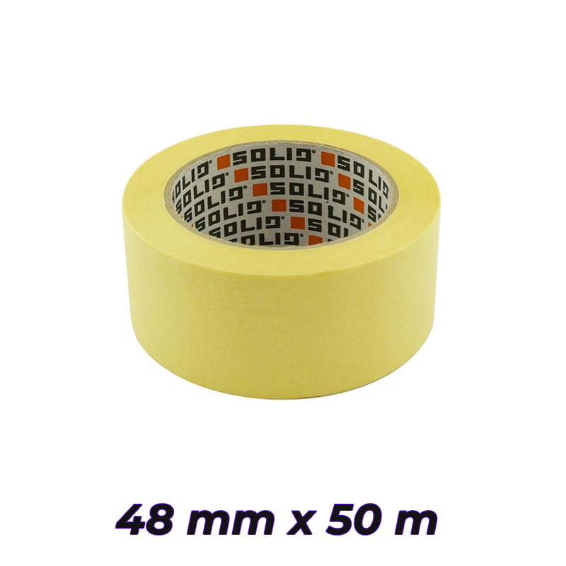 Profesjonalna taśma malarska SOLID przeznaczona do prac malarskich, remontowych i budowlanych. Idealna do maskowania i zabezpieczania powierzchni wewnątrz i na zewnątrz budynków.