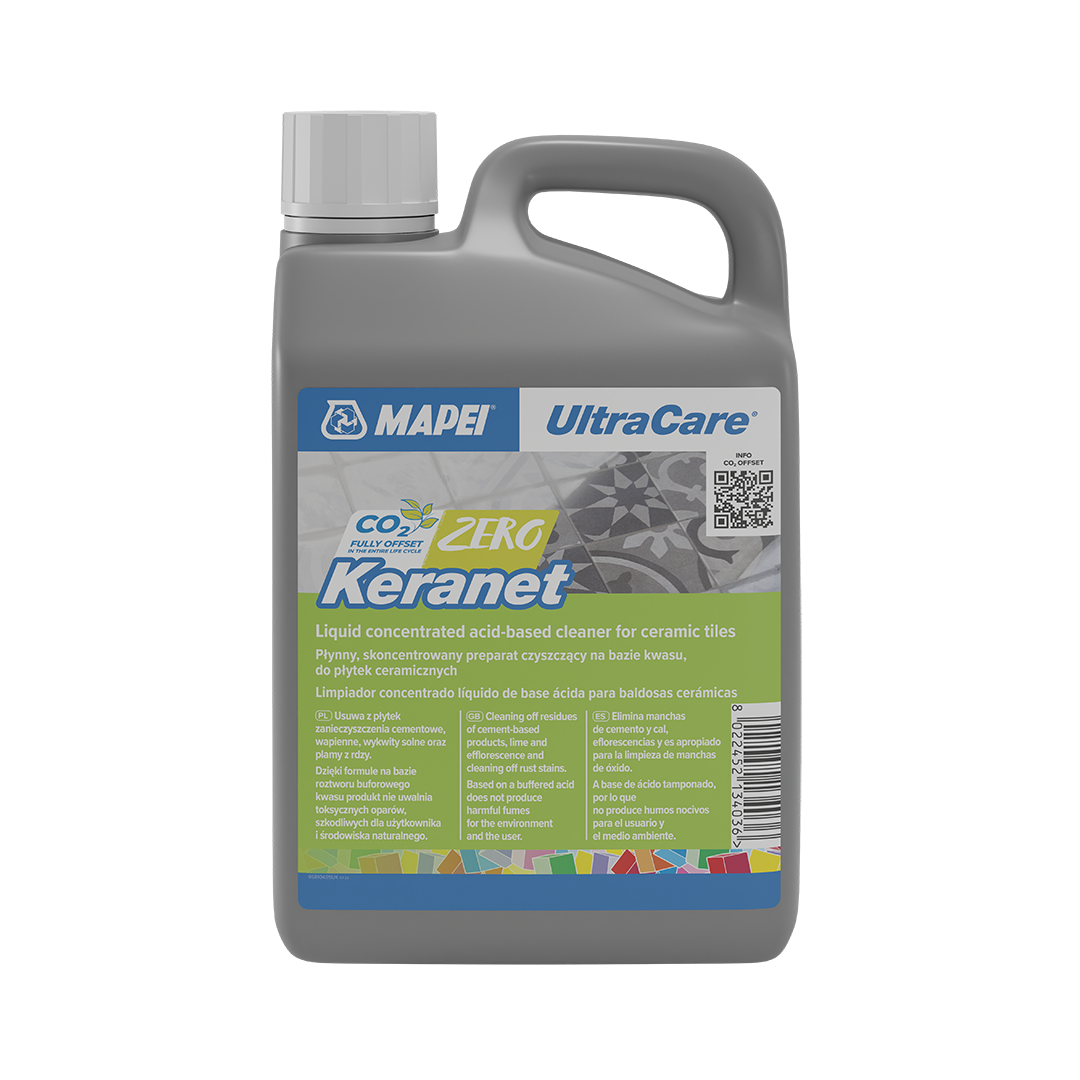 UltraCare Keranet służy do czyszczenia wewnętrznych i zewnętrznych powierzchni (w tym elewacji), które zostały zaspoinowane zaprawami cementowymi. Usuwa również zabrudzenia po betonie, zaprawach i klejach, nie uszkadzając przy tym spoiny cementowej.