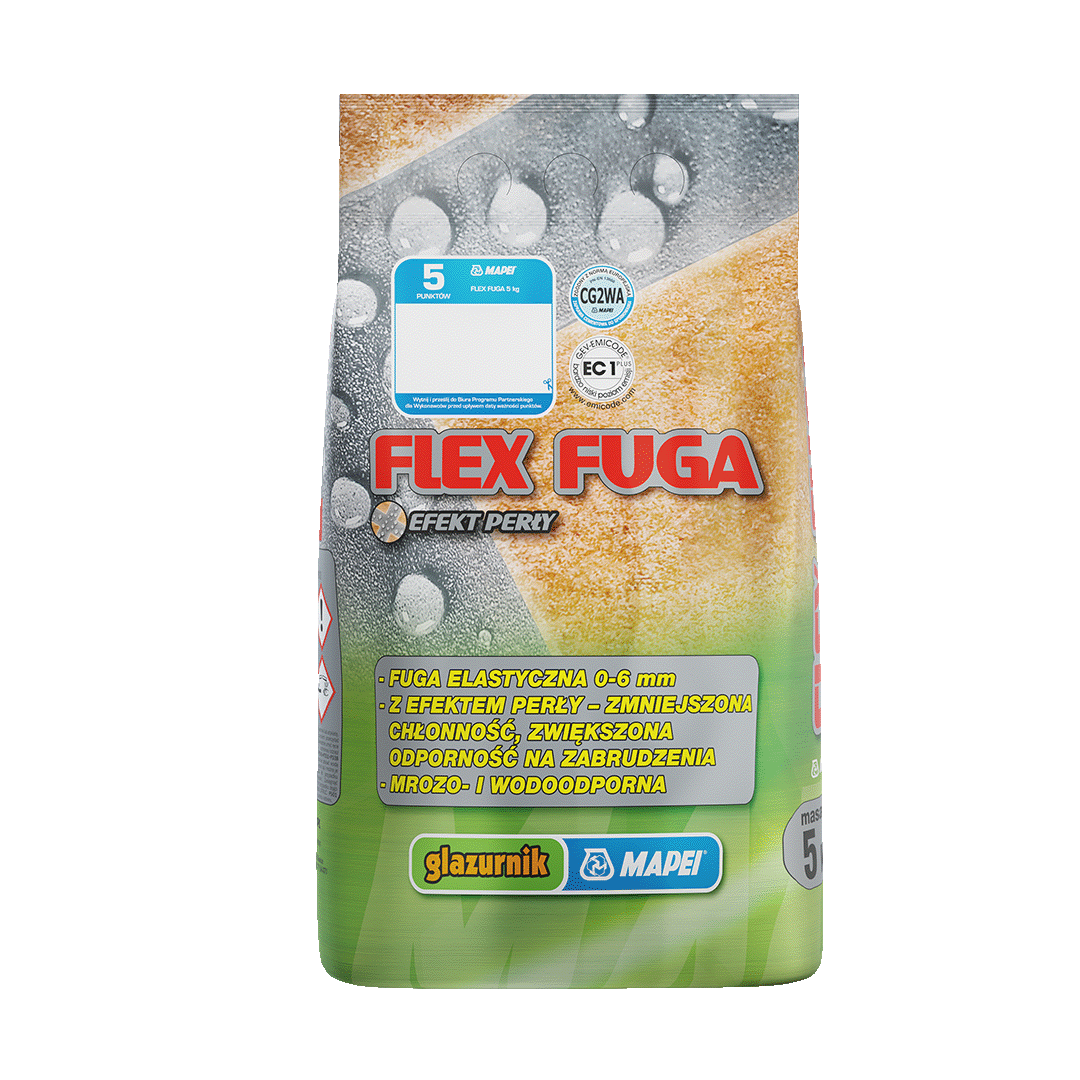 Flex Fuga GLAZURNIK MAPEI jest mieszanką cementu, odpowiednio wyselekcjonowanych, drobnych kruszyw, żywic syntetycznych, specjalnych dodatków oraz pigmentów. Użycie specjalnych dodatków powoduje, iż zaprawa posiada właściwości hydrofobowe, doskonałą trwałość oraz zmniejszoną podatność na zabrudzenia. Wymieszanie produktu z wodą w zalecanych proporcjach oraz jego prawidłowe zastosowanie powoduje, że produkt charakteryzuje się następującymi właściwościami:
