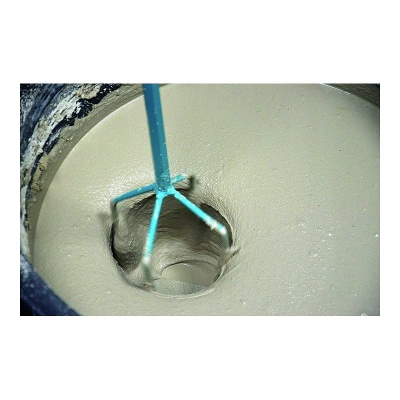 Mieszadło KR wytwarza duże siły ścinające, które zapobiegają tworzeniu się grudek i zapewniają szybkie, jednolite zmieszanie masy. Poprzeczka pomaga zeskrobać materiał z dna wanny. Łatwe do czyszczenia (materiał prawie nie klei się do narzędzia).