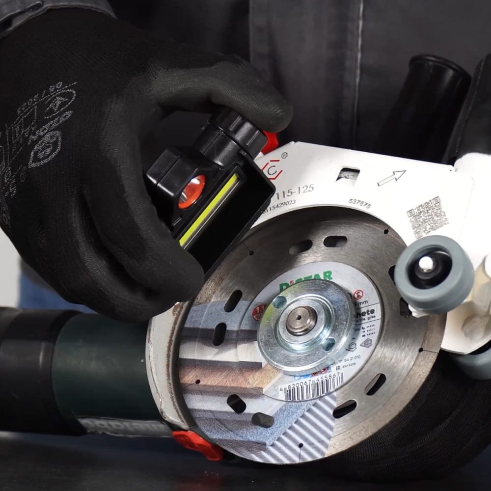 - Kluczowe znaczenie dla jakości cięcia materiałów budowlanych ma wizualna kontrola obszaru cięcia podczas pracy. Musisz widzieć kierunek cięcia, dostosować siłę tarczy diamentowej w zależności od liczby odprysków.